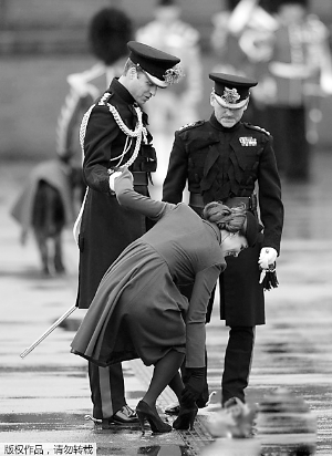 在英國奧爾德肖特,威廉王子和凱特王妃視察愛爾蘭衛(wèi)隊(duì)第一營,出席那里舉行的圣帕特里克節(jié)游行時(shí),懷有身孕的凱特王妃的高跟鞋細(xì)跟不慎卡入排水管中,凸顯尷尬。