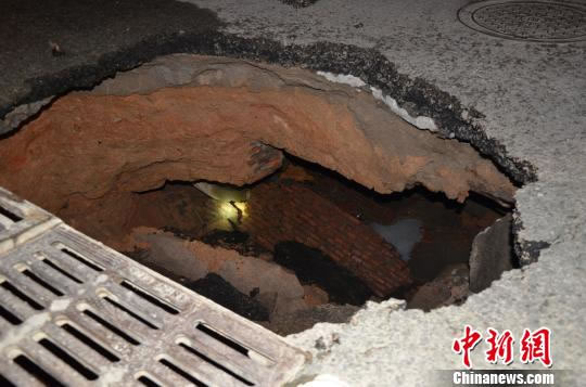 記者趕至事發(fā)現場,看到事發(fā)地點的柏油路面開口處約1平方米,順著開口處往下看,是一個巨大的漏洞。龍崗區(qū)水務局運管單位深圳國禎環(huán)保公司調來大型挖掘機,連夜勘察維修。